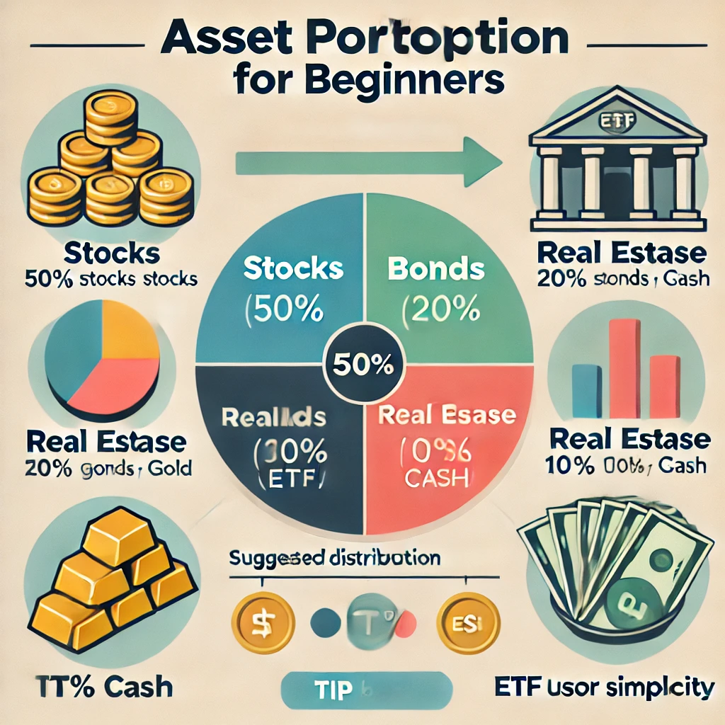 - 주식 70%, 채권 10%, 금 5%, 부동산/리츠 10%, 현금 5%